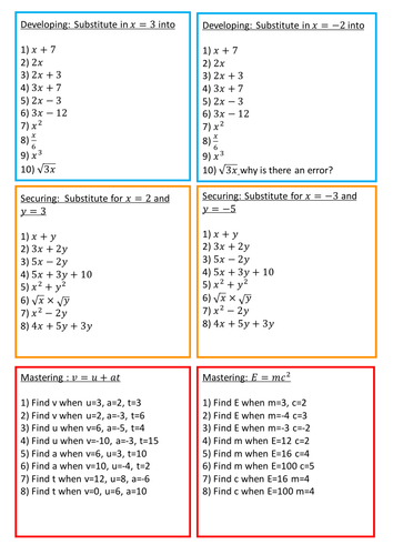 Substiution Worksheets with Answers | Cazoom Maths Worksheets Our substitution worksheets were created to help students master this complicated area of maths. We have resources available which cover substituting numbers into formulae, magic squares, using negative numbers and more. All of the worksheets we offer are presented clearly, making the topic of substitution easy to understand.